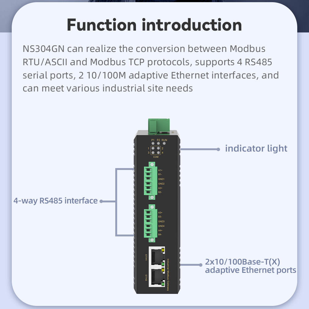 ● Support 4-way RS485 to 2-way 10/100M Ethernet (can be cascaded)