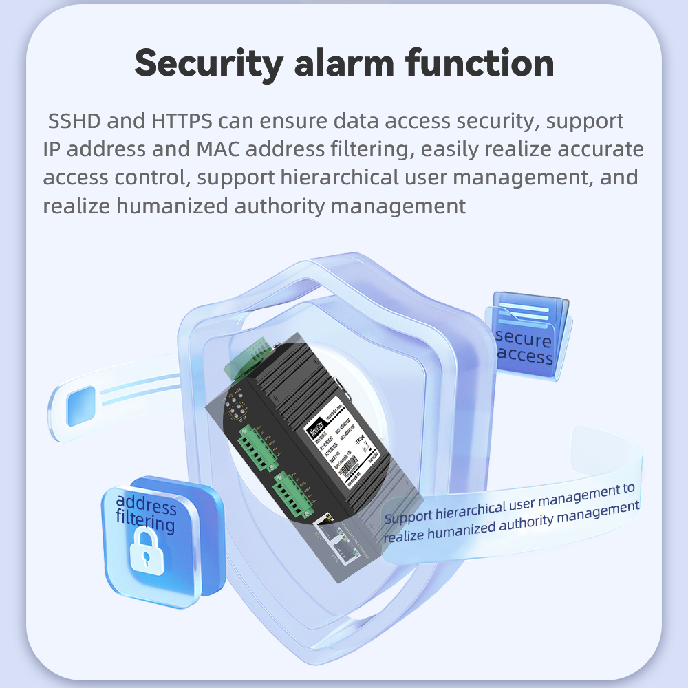 ● Supports DC9~60V non-polarized input, dual power supply redundancy design, 4kV surge protection