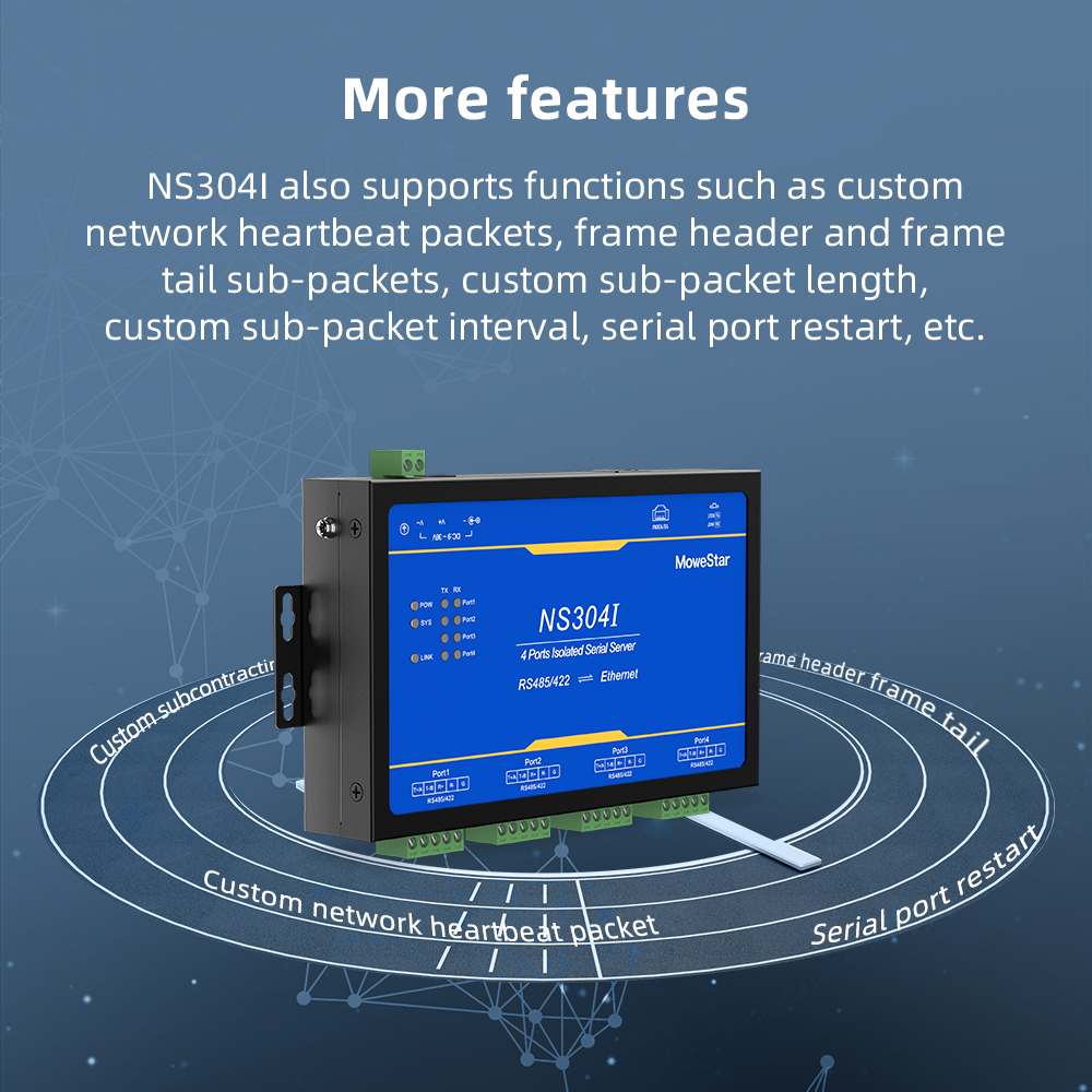 ● Support 4-way RS485/422 to Ethernet, each serial port can be configured individually, working simultaneously without affecting each other